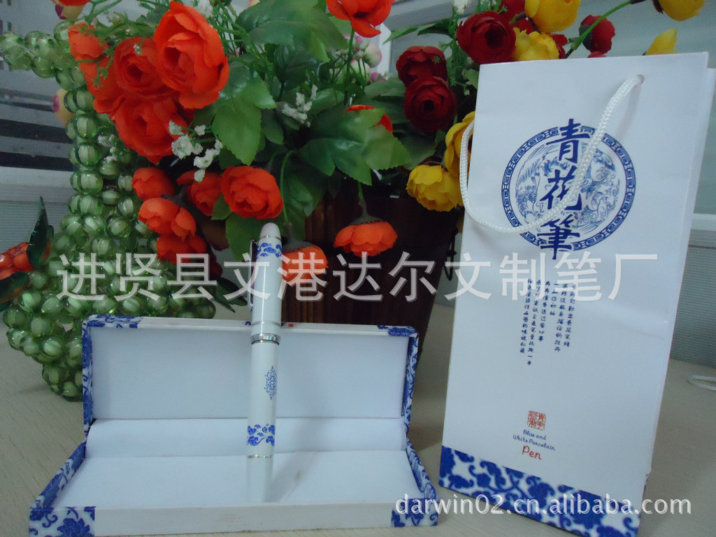青花瓷笔,陶瓷脸谱笔,纯陶瓷烧制的笔。分钢笔和签字笔,“中国风”已成为世界的一种时尚“青花瓷,让您更回味历史”。笔身晶莹剔透,手感润滑,此款笔生产的难度系数极高,因为笔身的陶瓷厚度为1.3毫米,笔身和陶瓷笔杆的误差为0.05毫米,烧制温度为高温1200度,陶瓷笔管从做模,到贴花出成品时间为10道工序,出成品后经过严格筛选,一般要淘汰一半多不合格的,选出来的可谓百里挑一,由于市场上无此类产品,青花瓷笔特点是:书写流畅,还可按客户要求在笔刮上精雕字,数量多笔身上烧各种图案、LOGO、文字、广告用语等。生产产品速度快,交货及时。青花瓷笔的问世,将是礼品市场的大热门。