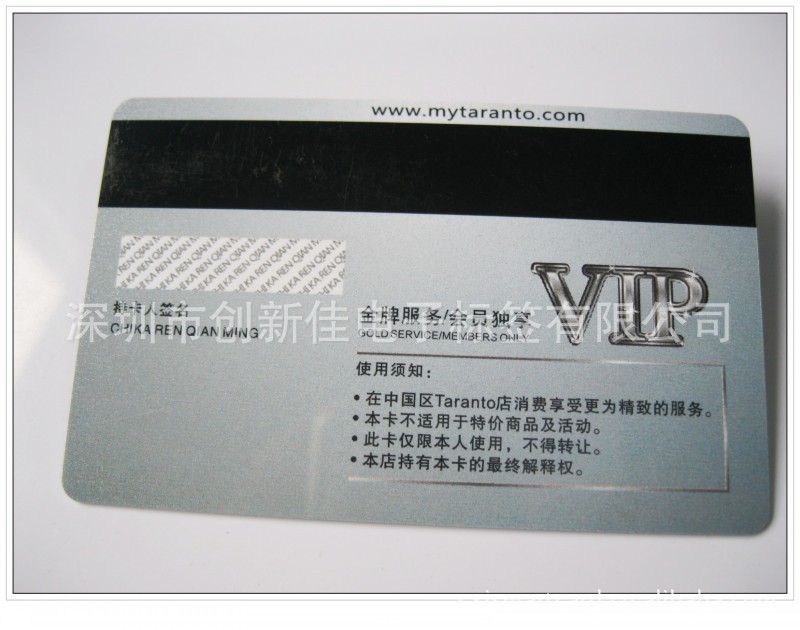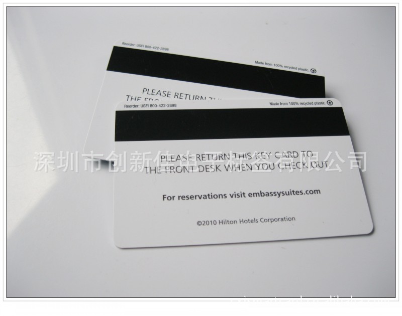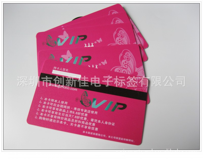 我公司磁条卡全部按VISA/MASTER国际信用卡标准ISO7810制造。优质的PVC卡基,A级磁条。