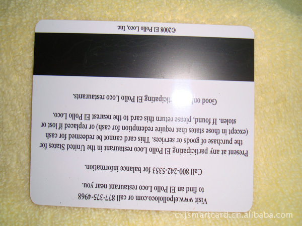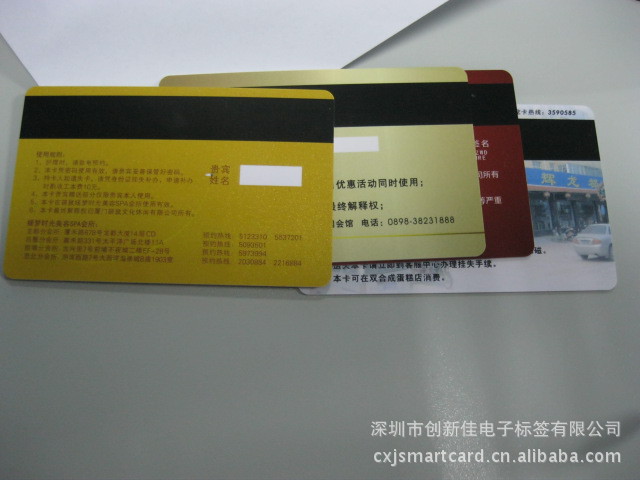 产品类型:PVC磁卡 制作原料:PVC、PP、PS、ABS 产品规格:85.5*54*0.76 MM;也可以按客户要求制作异形非标规格。 应用范围:磁条卡一般作为识别卡用,可以写入、储存、改写信息内容,特点是可靠性强、记录数据密度大、误读率低,信息输入、读出速度快。由于磁条卡的信息读写相对简单容易,使用方便,成本低,从而较早地获得了发展,并进入了多个应用领域,如超市、商场、金融、财务、邮电、通信、交通、旅游、医疗、教育、宾馆、酒店、美容、美发、商务会所等。 深圳市力佳智能卡有限公司专业生产各种PVC磁卡,包括PVC卡,PVC超市磁卡,PVC电信磁卡,PVC酒店磁卡,PVC商场磁卡,PVC药店磁卡、高抗磁卡制作,普通磁卡制作,低抗磁卡制作、深圳磁卡制作厂家、优质磁卡制作、广东PVC磁卡印刷、等等。深圳磁条卡制作公司,PVC磁条卡生产厂家为您提供专业的PVC磁条卡服务。 我们不但能为客户生产标准磁卡,也可以为客户生产异形迷你磁条,可以做高抗磁卡也可以做低抗磁卡。 了解更多磁卡、制卡业务咨询 |
