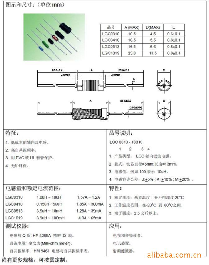 6-25 磁棒电感 1.0MM -12T-4.2UH立式套管电感