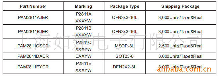 手机、数码相机、PDA、MP3等 封装:QFN3*3-16L,最小包装3K,绿色无铅封装。