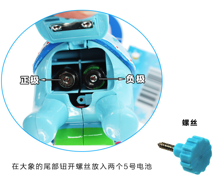 描述:可以喷水的大象风扇,在大象的尾部对准正负极放入两个5号电池打开开送
