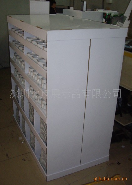 1.纸货架又称陈列架,展示盒.适用于超市,卖场,商场,展会等.外观图案,色彩,造型可自由设计,广告效果极佳.