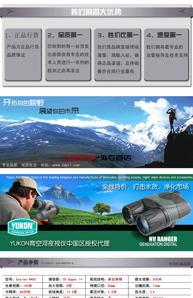 YUKON育空河育兰艾森龙EXELON4x50单筒红外微光夜视仪夜视望远镜