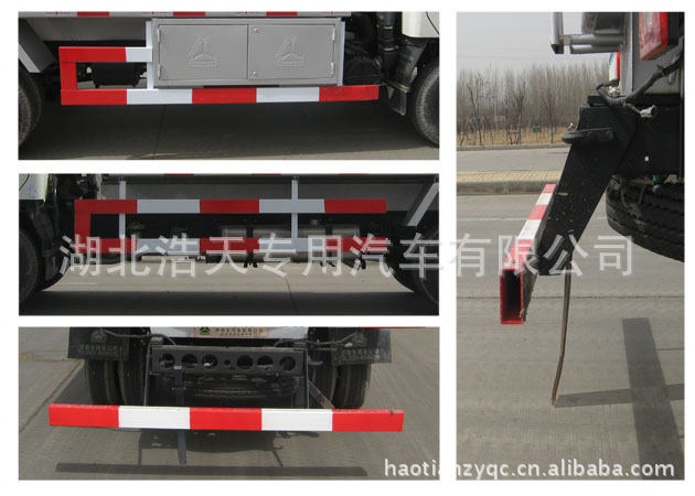 罐体有效容积:5.5立方米,罐体外形尺寸(长×长轴×短轴)(mm):4000×1650×1110,介质:汽油,介质密度:700千克/立方米。加油机型号:JSK-45B1121C,生产厂:稳恩佳力佳(北京)石油化工设备有限公司。侧面及后下部防护装置的材质为Q235A,连接方式均为螺栓连接,后下部防护装置的截面尺寸为(宽×高):50mm×100mm,离地高度为:390mm。