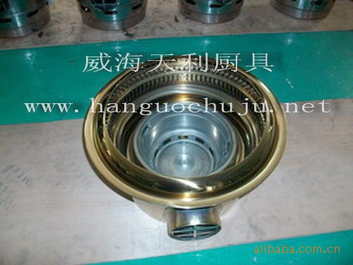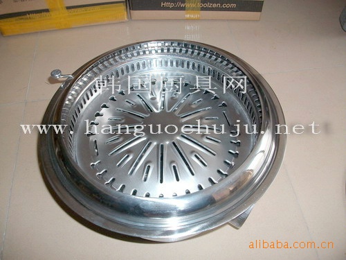 木炭烧烤炉是韩国技术人员我国内制造,为圆形,韩式木炭烧烤炉使用原料为木炭。户外使用也可以不用排烟设备,从排烟方式分为上排烟木炭烧烤炉、下排烟木炭烧烤炉和无烟木炭烧烤炉。烧烤炉采用优质不锈钢制作,一般为圆形。适用于韩国烧烤烤肉店和韩式料理店及日式烧肉店