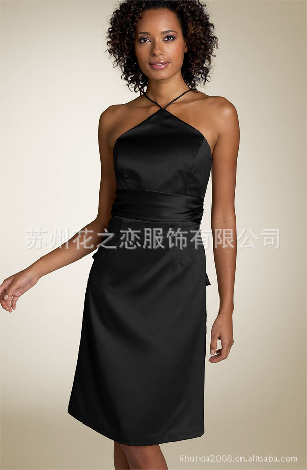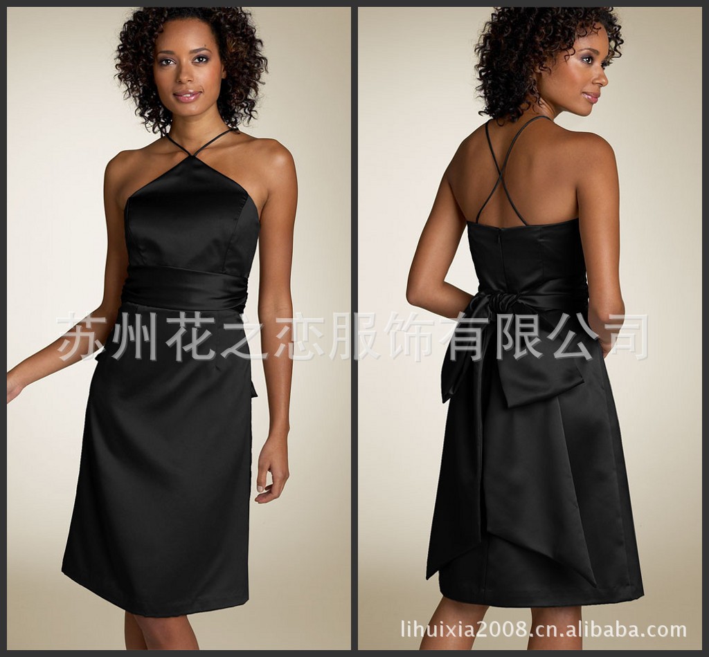 2012性感的 挂脖 黑色 晚会 主持人 伴娘外贸订做 小礼服 CD-182