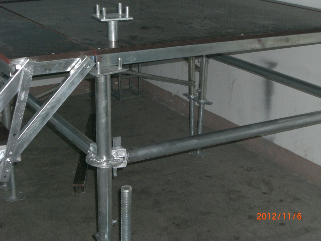 钢管活动舞台:1.22米*1.22米的规格。舞台板采用建筑胶合板,双层覆膜,表面防水。舞台的方框支架材质是国标钢管,斜撑杆为公司舞台为拼装式舞台,安装拆卸快速,运输方便等特点基于一身,所以也称为快装式活动舞台,舞台现货常规高度为0.6米和0.8米。