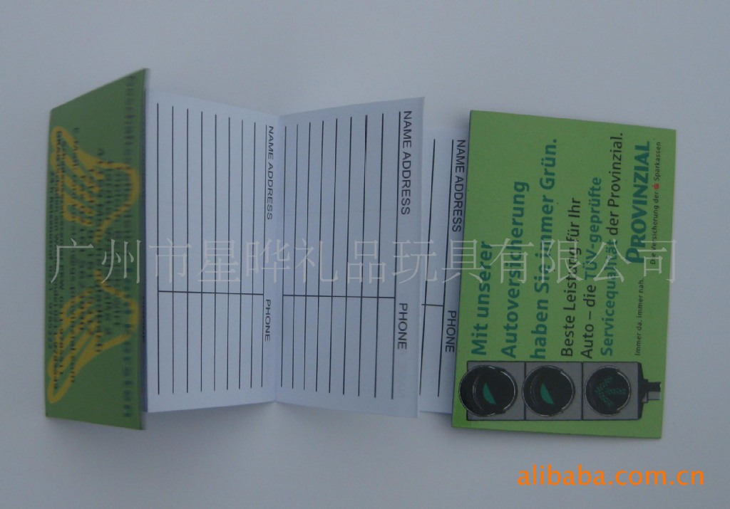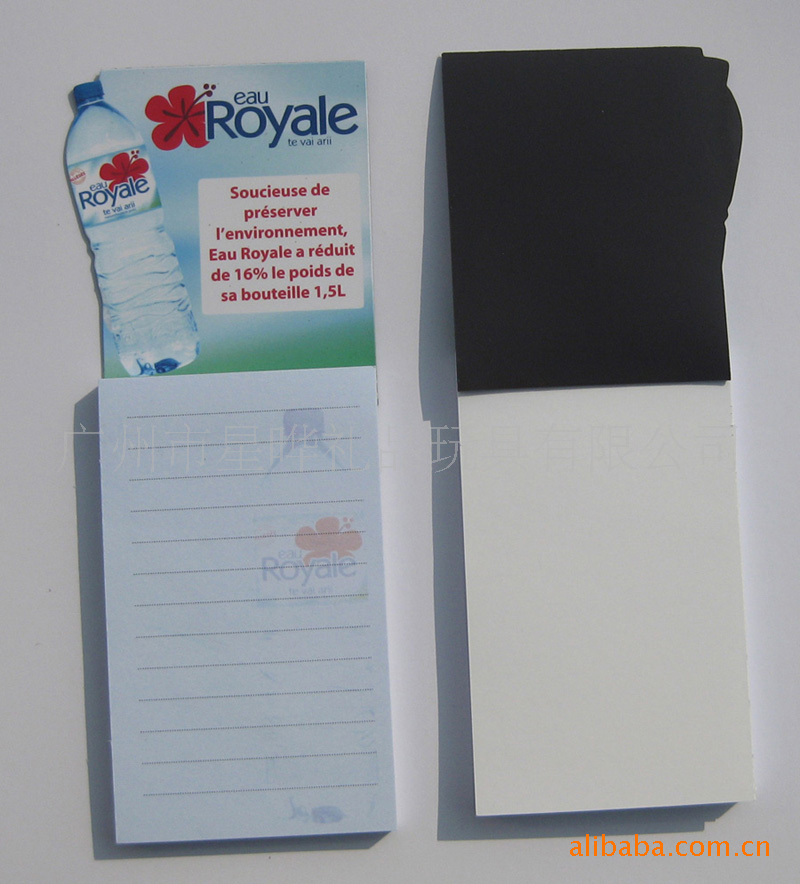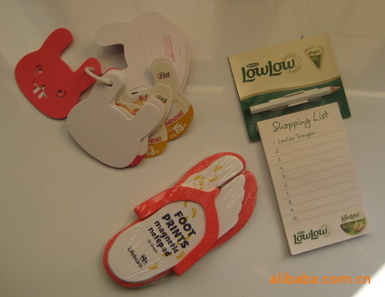6)磁性便签本:采用下面软胶磁铁+上面铜版纸四色印刷裱光膜+便签本,或是单独便签本,便利本。