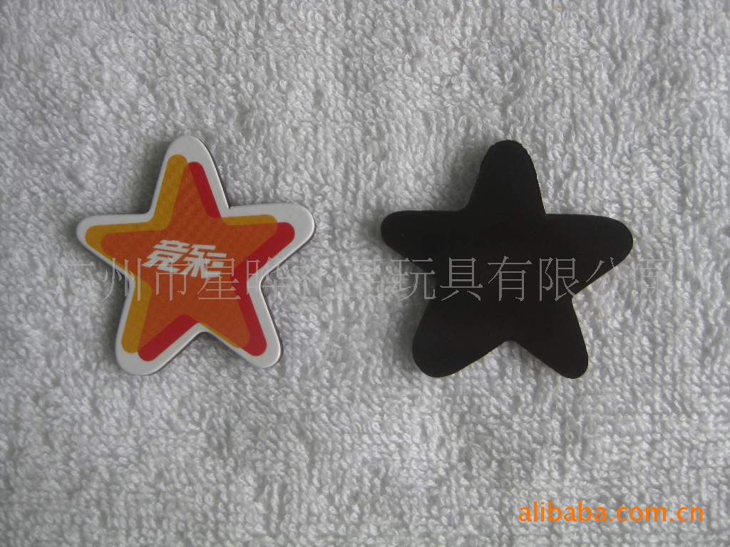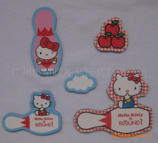 1)磁性冰箱贴:采用下面软胶磁铁+上面铜版纸彩色印刷腹膜制作而成。