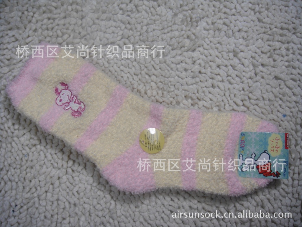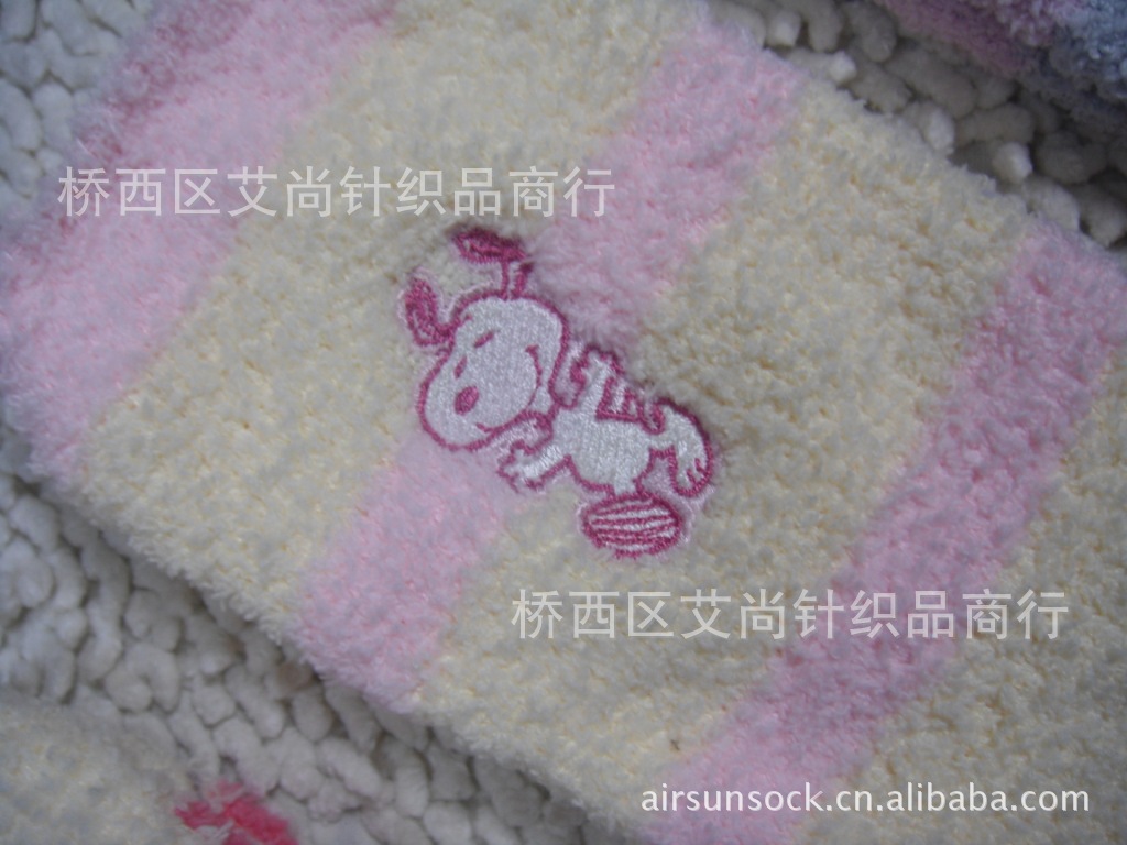 外贸原单多比兔史努比加厚柔软毛巾袜糖果睡眠袜刺绣半边绒袜