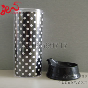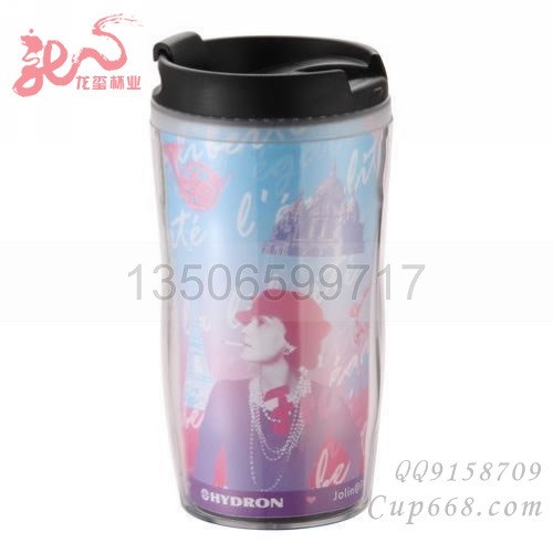 双层塑料杯,中间插广告纸,广告展现最佳水杯~