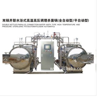 双锅并联具备双层水浴式杀菌锅的特点,而且比双层杀菌锅提高一倍的产量,节约能源和时间,为用户节约设备投资及降低了生产成本。自动切换锅内水流方向,温度均匀无死角。