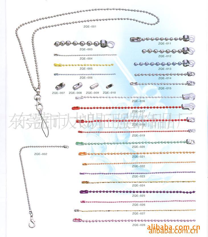 五金配件有铃铛,锌合金吊牌、铜/铁/不锈钢夹子、珠链、各类链条等