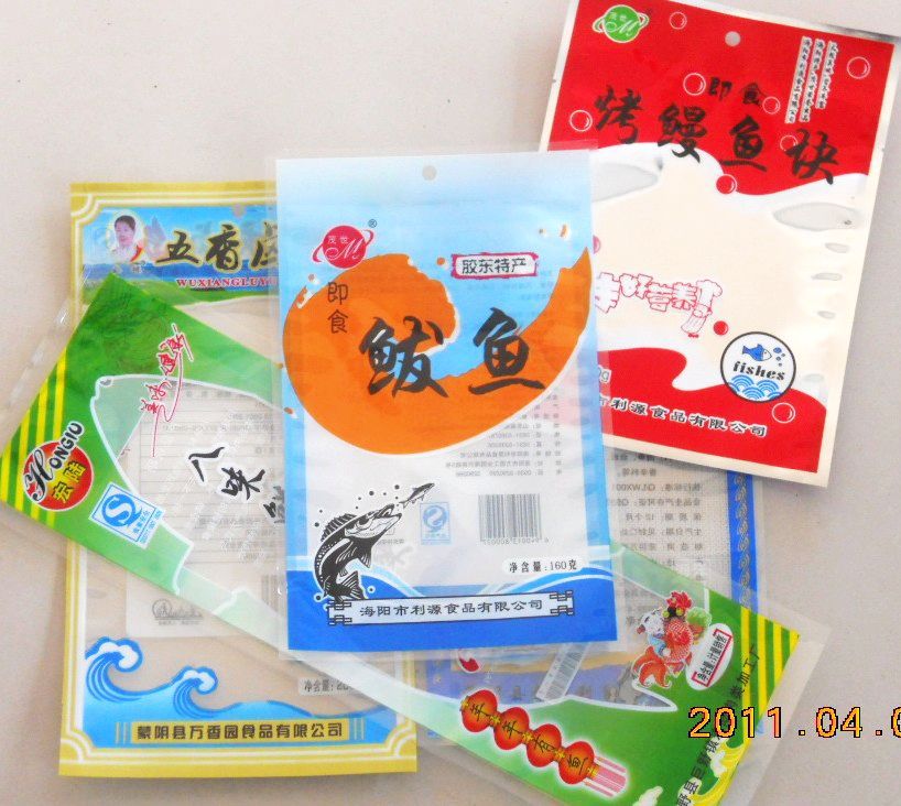3.高温蒸煮袋 基本结构为:为了满足蒸煮袋性能的要求,其结构外层选择强度高的聚酯薄膜,中间层选择具有遮光和气密性的铝箔,内层则选用聚丙烯薄膜。两层:PA+CPP 三层:PA+PET+CPP 四层:PA+PET+AL+CPP 用于高温杀菌食品、火腿、咖喱、烤鳗、烤鱼及肉卤制品等需要高温杀菌的产品。可耐120度高温,方便、卫生又实用。 不仅在常温下存放保质期较长,而且运输,仓储,销售都很方便,非常适合现代社会的消费需求。