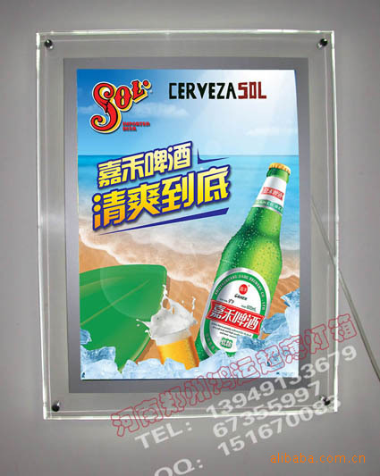 鸿运超薄LED灯箱由于其具有节能,美观,安装简便等特点,越来越受到社会各界尤其是广告界的认可。 1、亮光板自然双面导光,可以轻松制得双面灯箱; 2、亮光板均匀发光,灯箱内不需要使用散光膜; 3、亮光板灯箱室内室外均能使用,室内5年之内无明显衰减,室外耐水,耐光,耐候性较好; 4、亮光板可任意裁切,灯箱制作工艺更简单,灯箱能较快供货; 5、灯箱使用高品质的镇流器,管径偏大的灯管,进口反射膜使得侧面入射光达到较好耦合效率,起到超薄灯箱真正节能的作用;