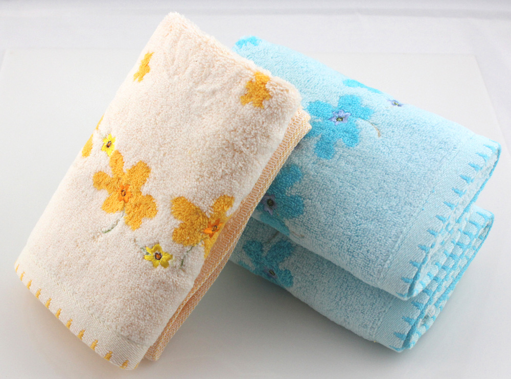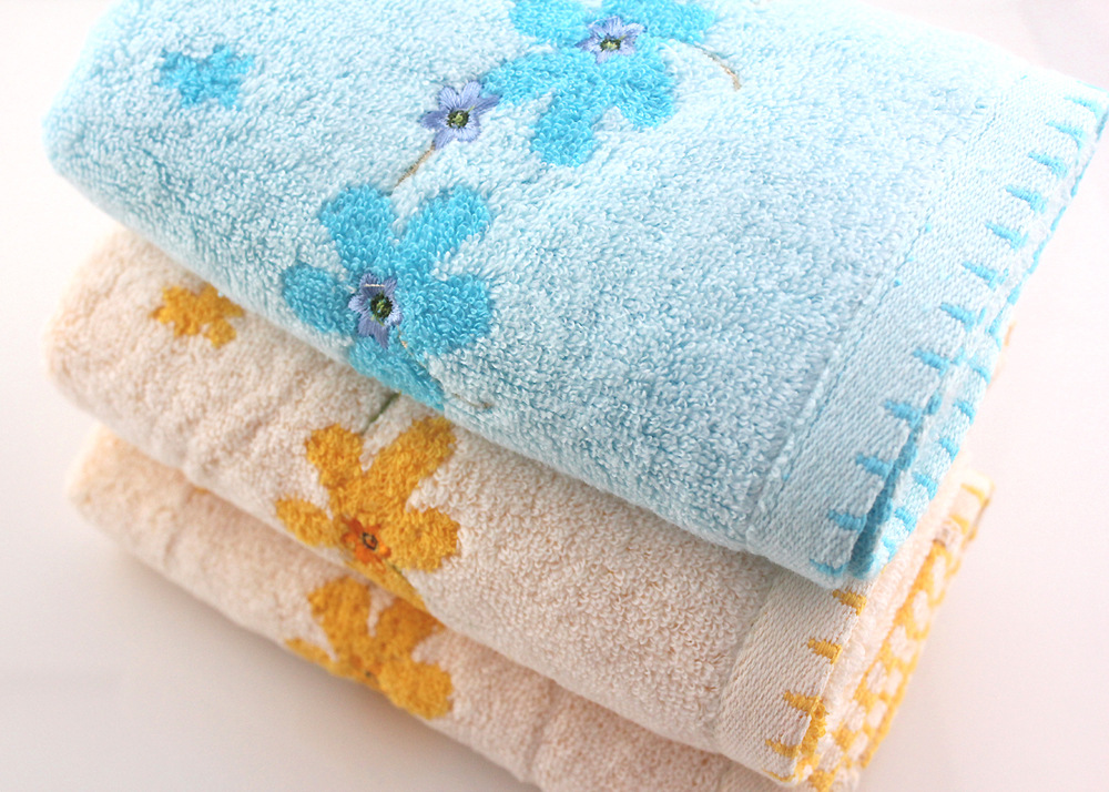 5.款式新颖,制作精细。毛巾可以有各种各样不同的款式,有螺旋、割绒、素色、印花等,还可以加上缎边,绣花,贴花,排须、镶嵌,有各种花色和图案的织物等,也有各种手段并用,这样的毛巾一般用料讲究,质量上乘,再加上精细的商标缝制等等,毛巾看上去很高雅,挑不出毛病,在加上合理的包装,让人爱不释手,切忌购买那些粗制滥造,无商标,无确切产地的毛巾。