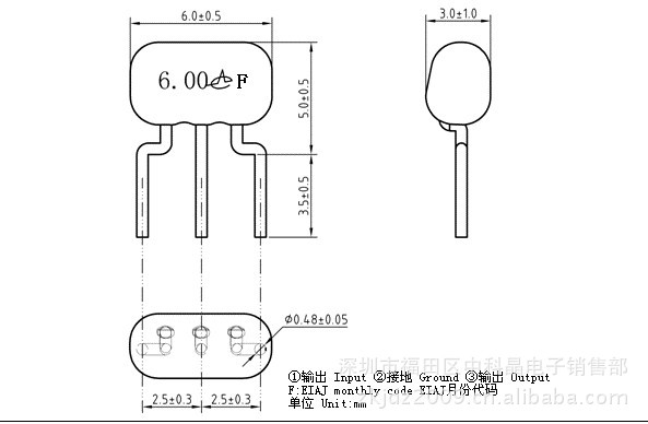 下图为:最新技术、体积更小。陶瓷晶振Z6.0M