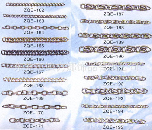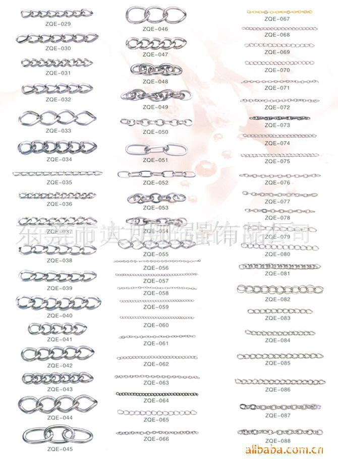 五金配件有铃铛,锌合金吊牌、铜/铁/不锈钢夹子、珠链、各类链条等
