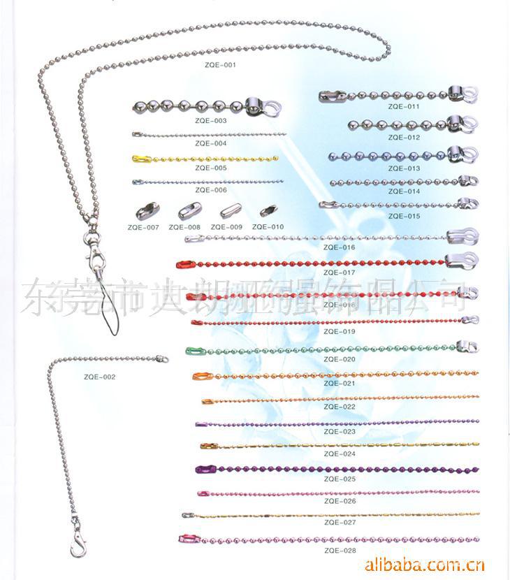 五金配件有铃铛,锌合金吊牌、铜/铁/不锈钢夹子、珠链、各类链条等