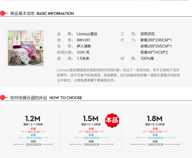 lionsuz蓝丝 雅尚 花系列全棉四件套1.5m