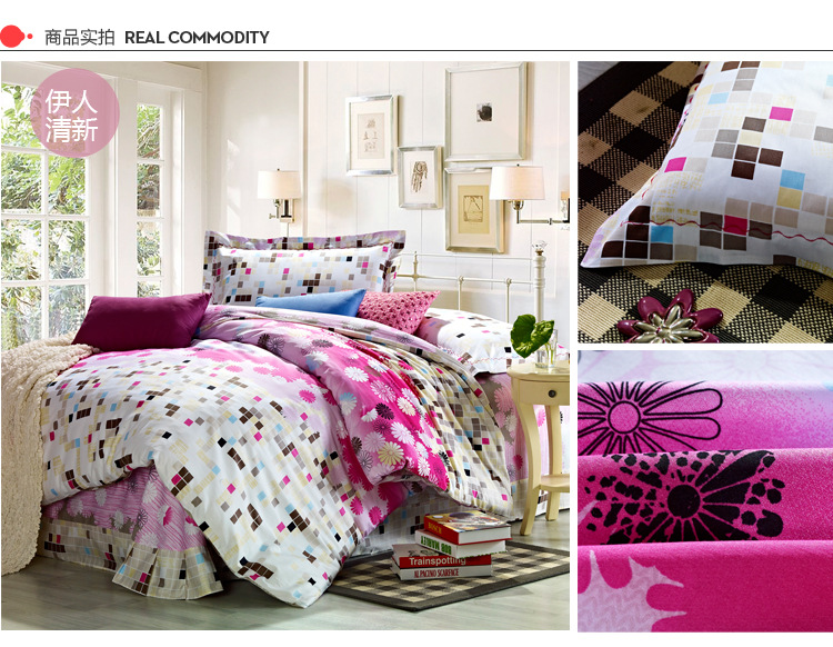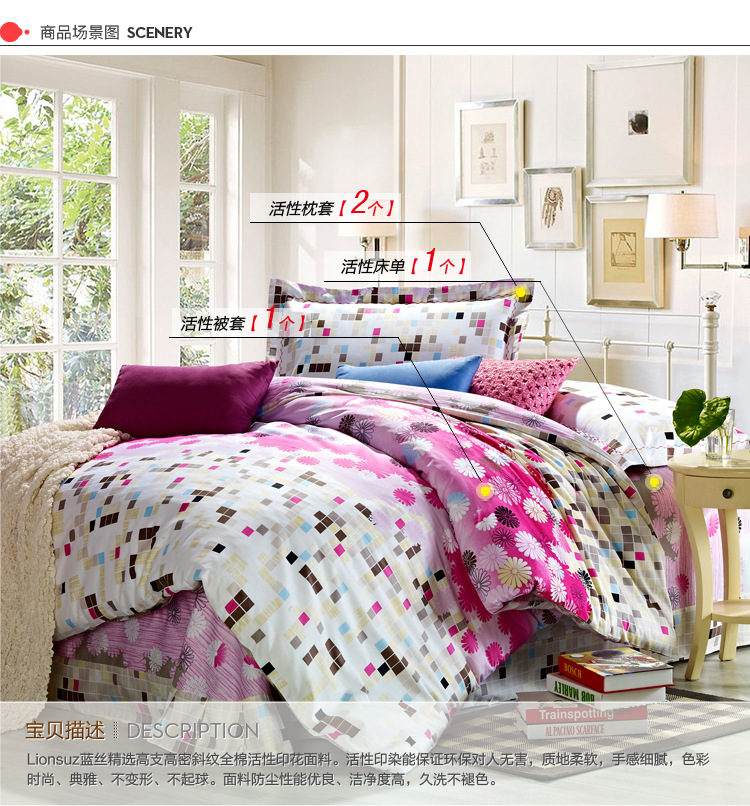 lionsuz蓝丝 伊人清新全棉活性双人四件套1.5m
