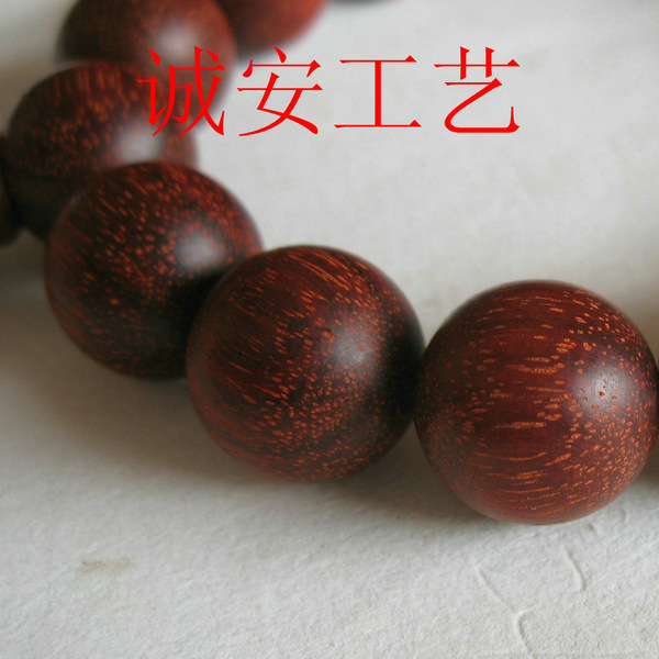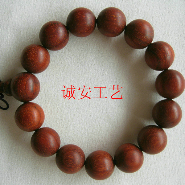 材质介绍:紫檀属于热带植物,生长在东南亚一带,这个树种十分的稀少,百年不能成材,一棵紫檀木要生长几百年以后才能够使用,而且十檀九空。所以自古以来都有"寸檀寸金"之说。生长在印度的紫檀是紫檀中的极品,称为小叶檀,它材质致密坚硬,心材显鲜红色或橘红色,久露空气后变紫红褐色条纹,略有一点点芳香。自古以来,我国紫檀木的使用仅属于帝王、达官特权者。现在越来越多的人,意识到紫檀的珍贵,并以有一两种紫檀制品在身边引以自豪,国际上正在刮起收藏紫檀之风。 紫檀素有驱邪、镇宅、治病之说,故又称之为圣檀,人们常常把它作为吉祥物佩带或摆设!