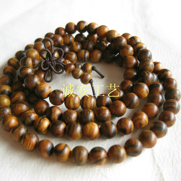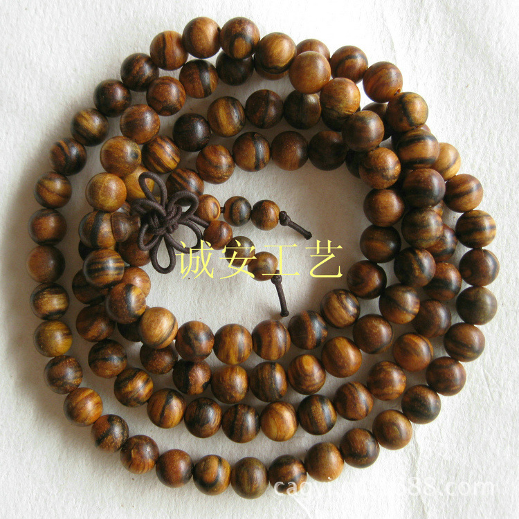 材质介绍:所谓花奇楠,就是一种生长在越南的藤类植物,有其一定的经济价值,其自身生长有油脂线,做成珠子之后看起来就非常类似沉香的油线。不同的是本身有一点点香味,但没有沉香的特有香味。花奇楠从外形上看很像沉香,当然它不是沉香,但比市场上纹理类似的虎皮檀要好,区别就在于虎皮檀无香味。