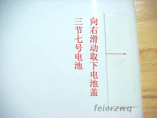 用3节7号电池,按正负极的方向依次放入电池盒中(按图示),再装上电池盖。