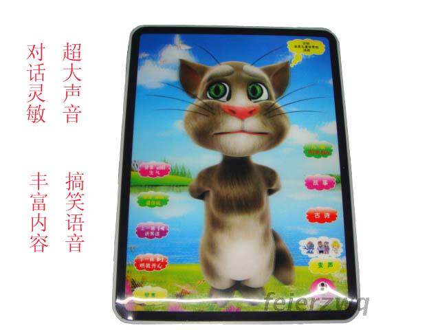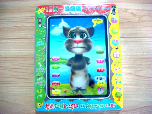 1、开机、电池按正确的方向装好,用手触摸开关机铵键。机器会有打招呼的语音:“欢迎来到汤姆猫儿童世界,”并自动进入汤姆猫互动游戏。