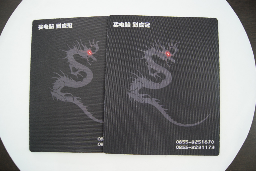 这是一款目前最为流行的PVC广告彩印垫,但目前市面上的产品分为3种,2.5mm以下厚度的再生胶混天然橡胶的,产品容易起脱皮,质量硬实,有点异味。2.5mm(含2.5mm)以上厚度的是纯天然橡胶,产品质地松软,无异味,布和橡胶相对粘牢固,当然二者的价格也是截然不同的。