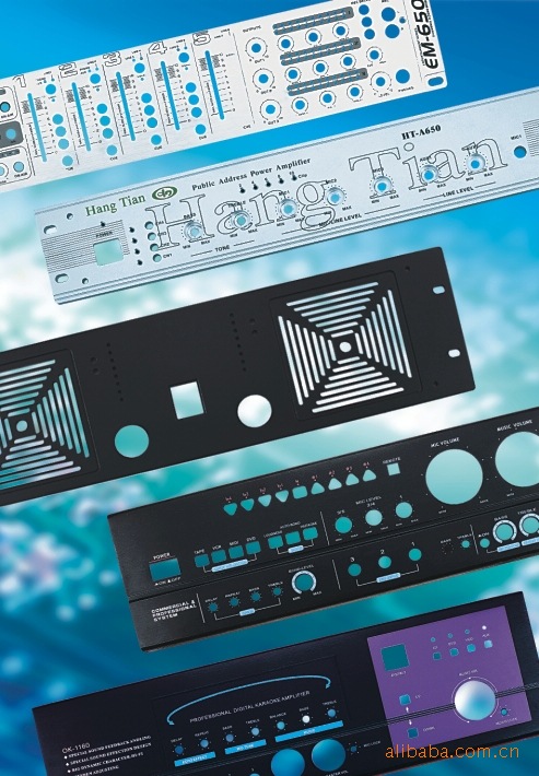 1、“王牌”音响铝面板、高级音响铝面板、专业功放铝面板、卡包机铝面板、智能广播机面板等300多款功放铝面板系列产品;