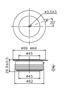 晶闸管分单向晶闸管、双向晶闸管。单向晶闸管有阳极A、阴极K、控制极G三个引出脚。双向晶闸管有阳极A1(T1),第二阳极A2(T2)、控制极G三个引出脚。