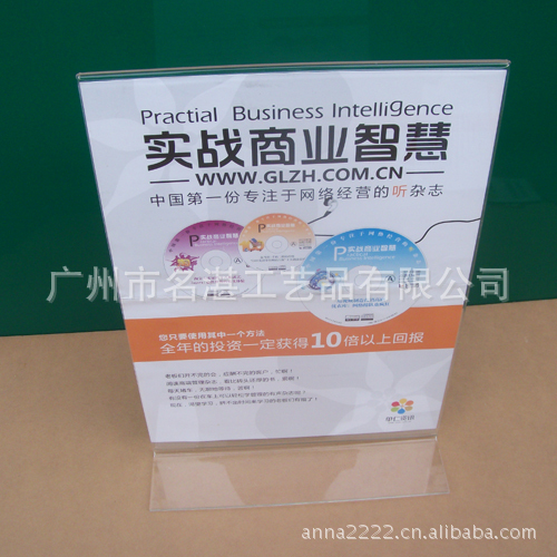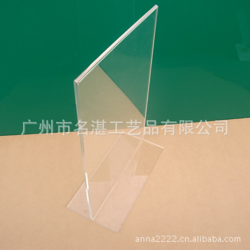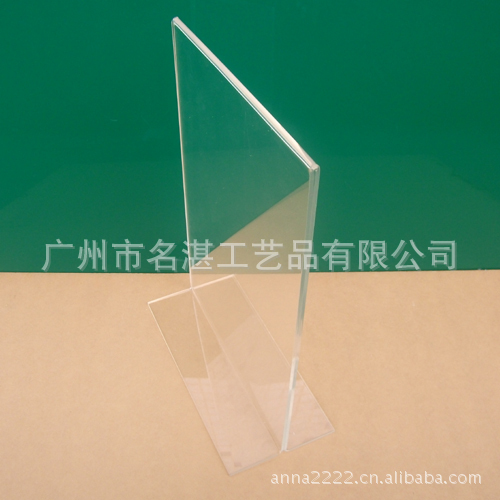 有机玻璃台卡由材质高档的有机玻璃材料热弯而成,这种有机玻璃材料表面光滑、色彩艳丽、高亮度是其它材料所不能比美的,可塑性强,造形变化大,加工成型容易,美观大方!时尚简约的有机玻璃台卡品质高雅、简单实用,完美展现当今时尚元素。可放在桌面或促销台上为您的产品增添时尚元素,立显非凡品位!
