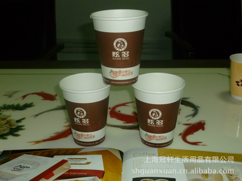 (1)我公司是集生产、研发、销售于一体的正规公司,专业生产纸杯、纸碗。本公司生产的纸杯销往多个国家、多个地域。年产量在50000000只以上。工厂面积广阔,仓储面积大。黄浦人民路上有冠轩门店。产品繁多,种类齐全,主营:通用现货批发、来样定制、设计样稿定制、加印logo,具体事项请来电详谈。