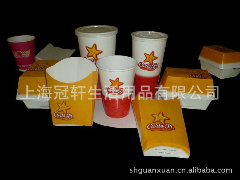 供应一次性用品套餐,冷热饮纸杯、大中小薯条盒、鸡块盒、汉堡盒、纸杯带盖,欢迎选购。