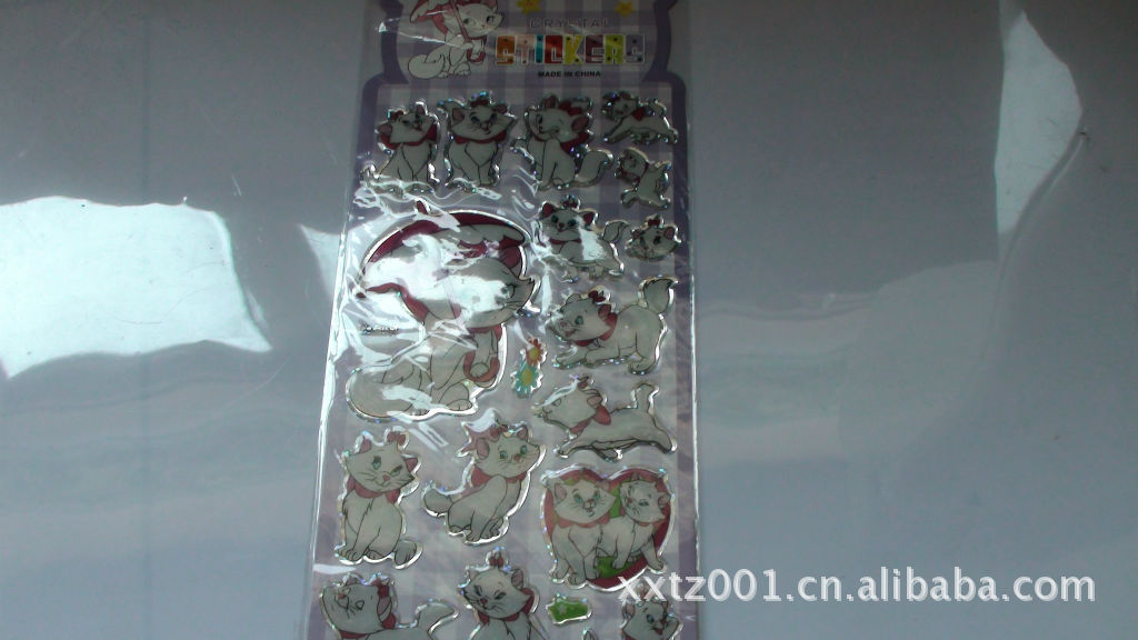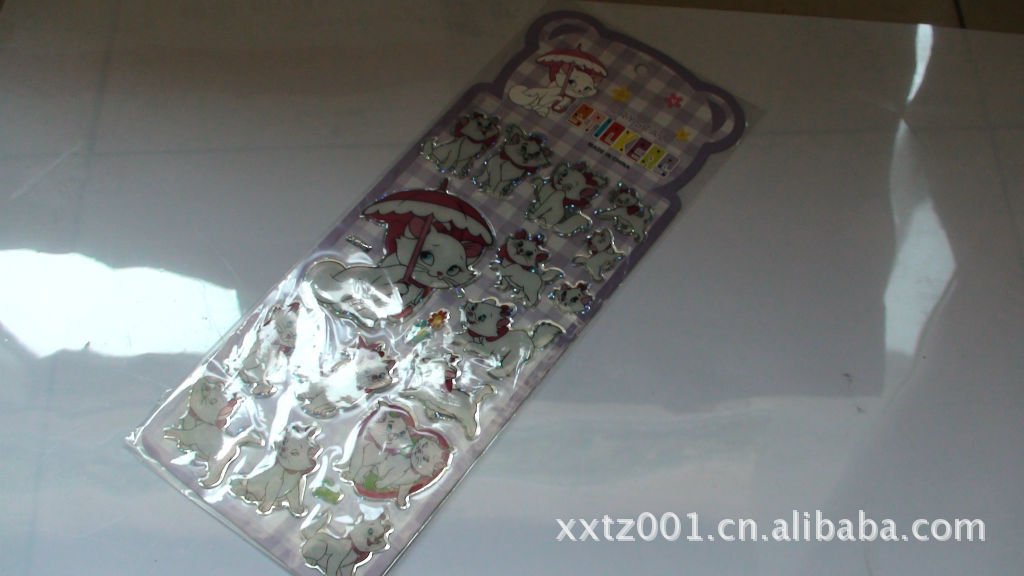 本公司生产的水晶滴塑贴纸采用优质pvc材料+UV印刷+传统手工滴塑而成,于室温或 中温固化,固化后高度透明表面光泽优秀,电气性能佳,有弹性,轻度划擦表面即可恢复原状;防水、防潮、耐化学腐蚀,具有优良的颜色稳定性,合理的配方使之耐紫外线优秀、不黄变。可添加透明色膏加以染色。 此款喜羊羊贴纸深受儿童喜爱,款式新颖,色彩鲜艳,远销日本、韩国、东南亚、中东和北美,可用于广告促销、产品宣传或随产品一同授卖,价格实惠。