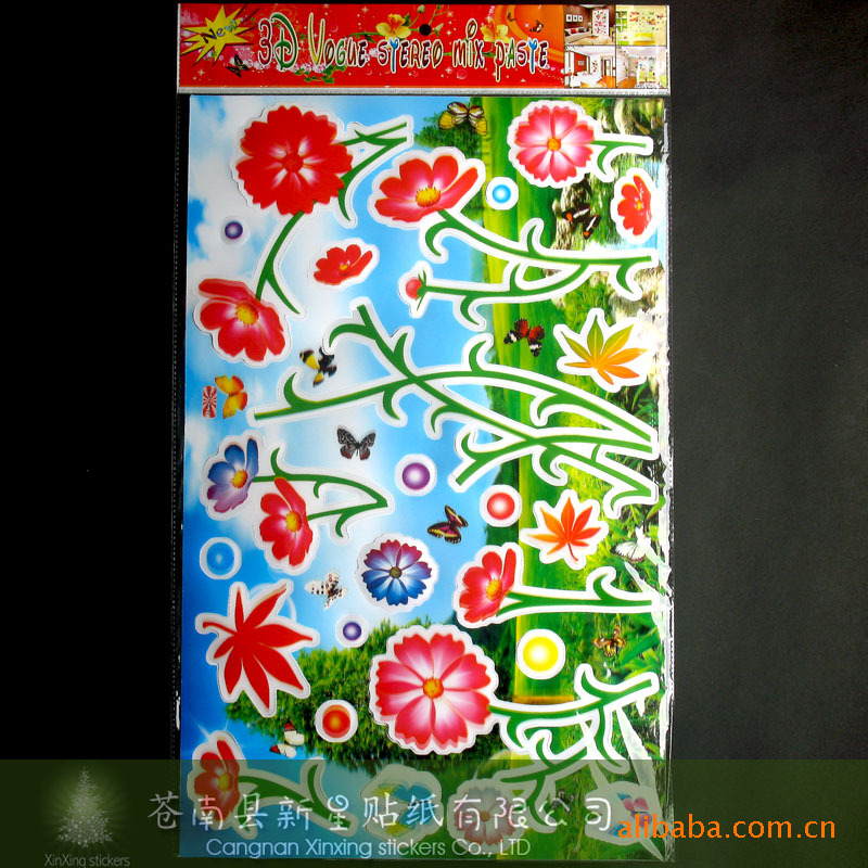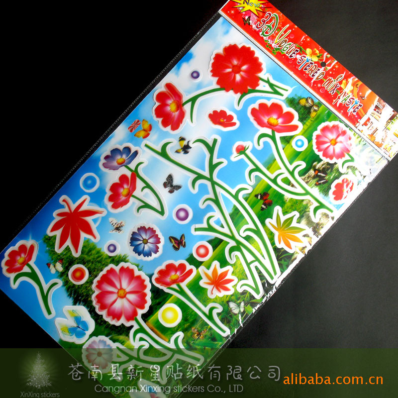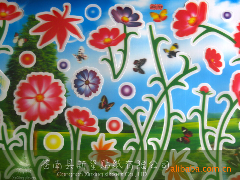 本公司专业设计、生产、销售各种贴纸(水晶贴纸、泡泡贴、指甲贴、纹身贴、组合贴、美容贴、不干胶贴、镭射贴等)。可根据客户的要求印刷图案(LOGO)广告语或根据客户提供的要求和描述进行设计和生产,并提供打样服务。三维立体组合体墙贴采用先进印刷技术,效果生动逼真、栩栩如生与花卉图案相呼应,展现完美效果,质优价廉!
