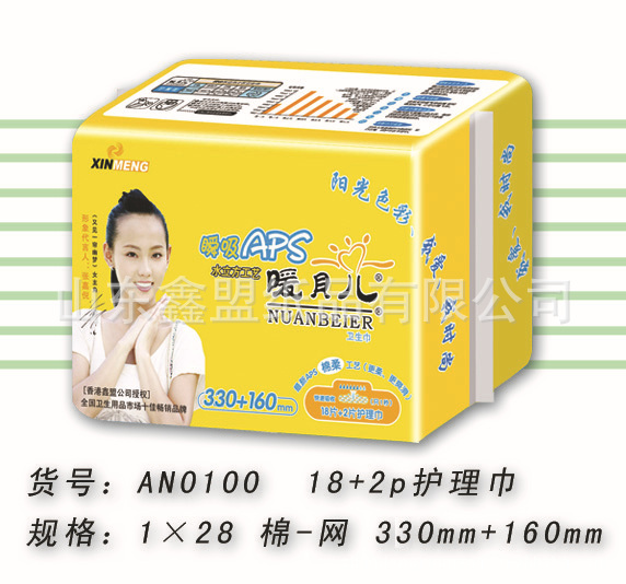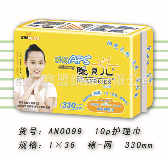 公司现有设备包括:意大利进口卫生巾生产线2条,国产全电脑管理系统生产线5条,国产先进护垫生产线两条.多年来,鑫盟人本着诚信为本的经营理念从事运营,得到了广大消费者的认可和众多权威单位的好评.同时,公司开发的“女宝”、“暖贝儿”(国家注册商标)系列产品在众多地区已成为响有盛誉的知名品牌,并在03年度的全国卫生用品评选中荣获“全国卫生用品十佳畅销品牌”,05年喜登“中国质检协会会员单位”宝座。07年被评为中华名特优产品指定供货单位和“中国经济百佳诚信企业”荣誉称号,并通过ISO9001:2000质量管理体系认证。2009年10月,签约当红影视明星张嘉倪为公司形象代言人。