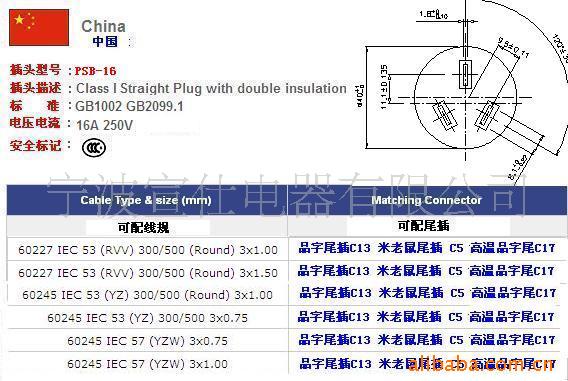 橡胶线配线: 245 IEC 53(YZ) 3C 0.75~1.0MM2 , 245 IEC 57(YZW) 3C 0.75~1.0MM2