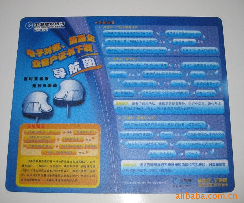 16)鼠标垫:采用背面EVA或者发泡橡胶+纸印刷复PVC磨沙或者直接PVC印刷制作而成。