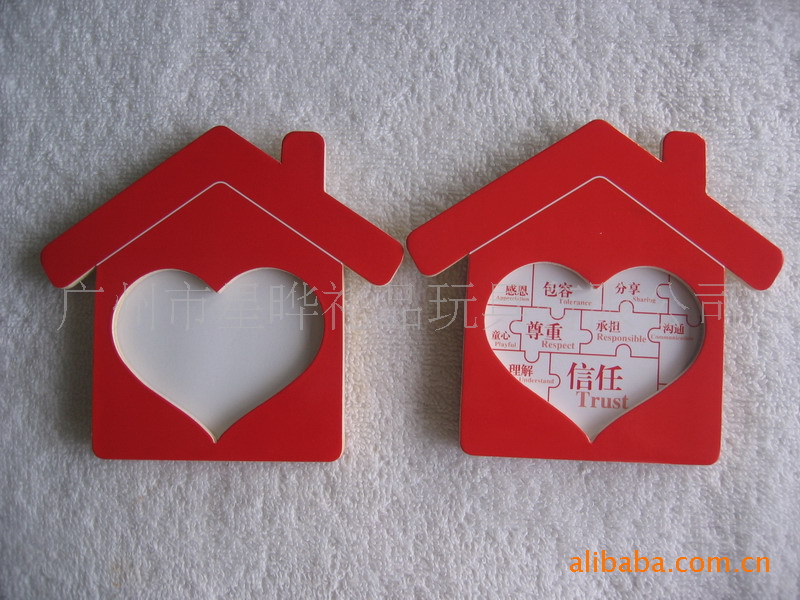 5)磁性相框:采用软胶磁铁裱铜版纸彩色印刷腹膜,中间冲切相框制作而成。或是按照客人要求制作双层相框,PVC相框,纸板相框等各种材质的相框。