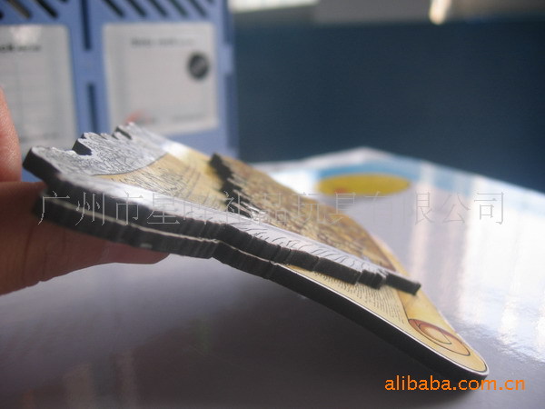 7)磁性拼图(纸板拼图):采用下面软胶磁铁(或纸板 灰板纸)+上面铜版纸四色印刷裱光膜,中间冲切设计需要的拼图小片来制作而。