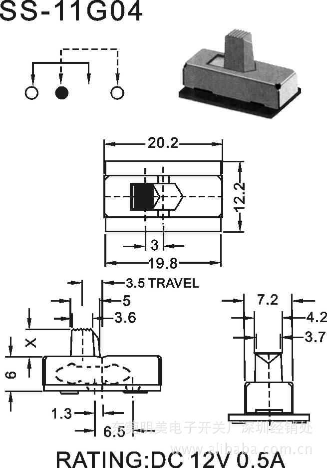 自产/拨动开关SLIDE SWITCH:SS-11G04