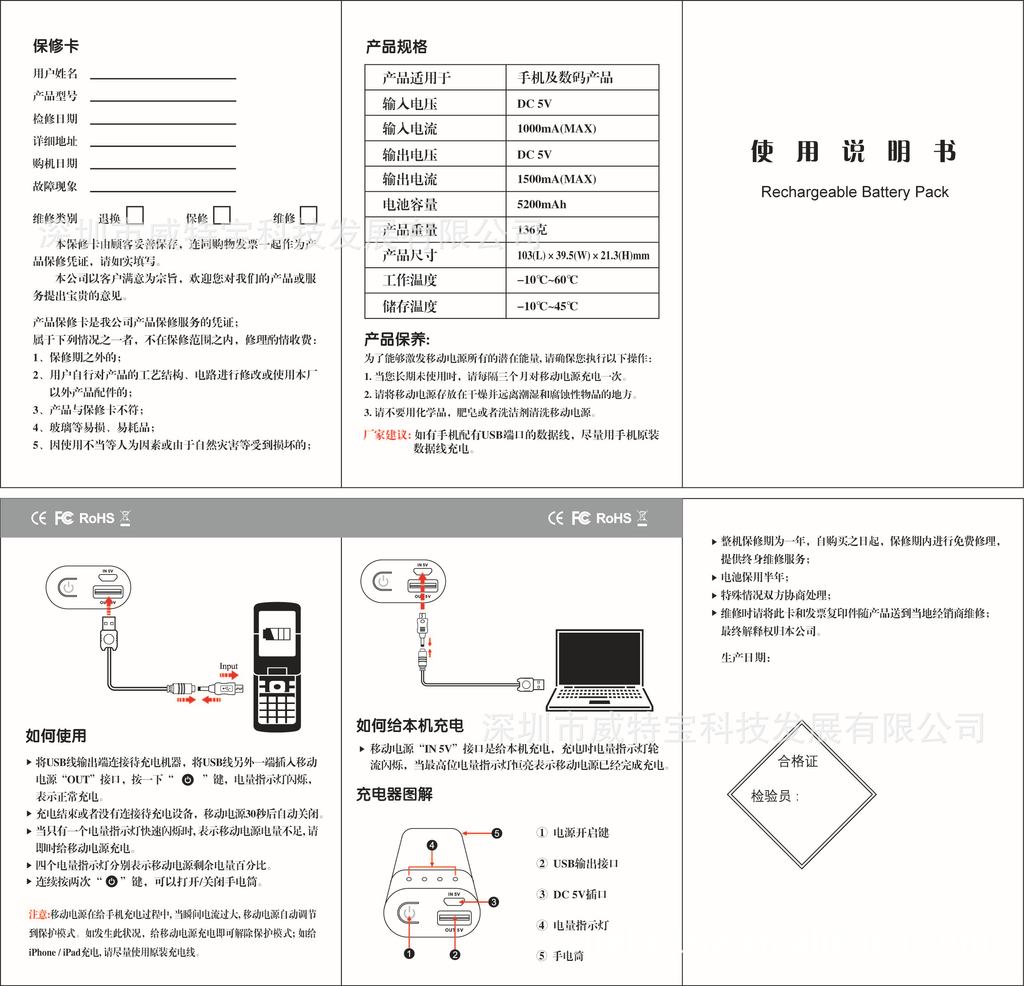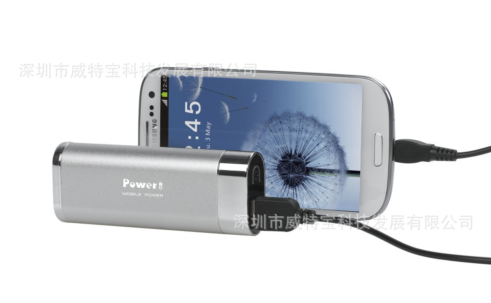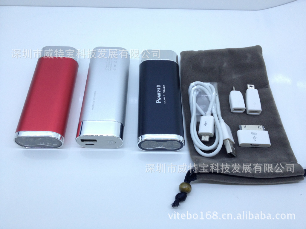 VTB-40A金属质感,LED手电筒 移动电源以其强大的能量储备,及时、弥久、智能的续电功能,即刻成为旅行者、数码产品发烧友的贴心伴侣;首推“送礼就要能量”新理念,在礼品业更是掀起一股时尚新潮! 超强能量1、足5200mAh的电流储备时刻“精神饱满”,在你手机等数码产品突然断电时,移动电源立即为她充电续航。2、满足您多个数码产品的多次充电,以一个500mAh的手机电池为例,可连续充电8到10次, 在半个月内让您充电无忧!3、电池采取采用高品质锂聚合物电芯,安全又高效。 数码伴侣1、最新运用数码产品充电电压自动智能检测功能,贴心保护您的手机、mp3、mp4、PDA、DV、数码相机等,大大增强他们的安全性和使用寿命。2、您旅行途中,不必带N多充电器,只需带上能量王移动电源就可以满足所有数码产品充电要求。 礼品新贵1、首推礼品行业“能量”概念,送礼就要送能量,代表精神、力量、年轻、健康,是一种全新理念、时尚尊贵的高档礼品。2、移动电源在国外是旅行者的贴心伴侣,数码产品发烧友的必备,彰显闲逸、丰富多彩、充满活力的生活。3、每人都遇到过数码产品工作中突然断电的尴尬时刻,送能量王移动电源,急人所急,无异于“雪中送炭”。 操作1. 将充电线输出端连接待充电机器,将充电线另一端插入充电器OUT接口,绿色,指示灯闪亮,表示正常充电2. 充电结束或者没有连接待充电机器,指示灯停止闪烁3. 30% 70% 100% 三个指示灯分别表示充电器本身电量4. 当亮蓝色指示灯时表示充电器电量不足,要及时给充电器充电5. 充电器IN接口是给本机充电,充电时红色指示灯亮,充电结束后指示灯熄灭6. 充电器可以为各种手机充电 规格充电电压:5V充电电流:1A(MAX)充电器输出电压有两种:5V和5.6V,充电器自动检测充电器输出电流:1.5A(MAX)电池容量:5200mAh