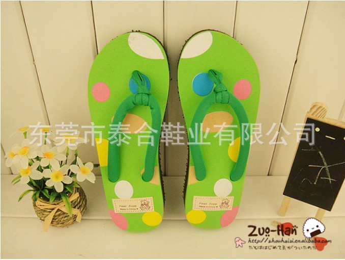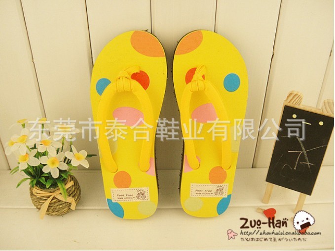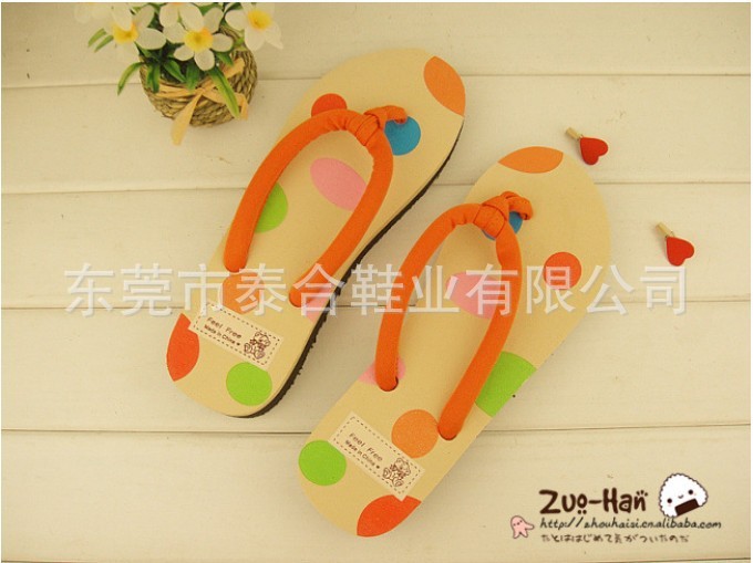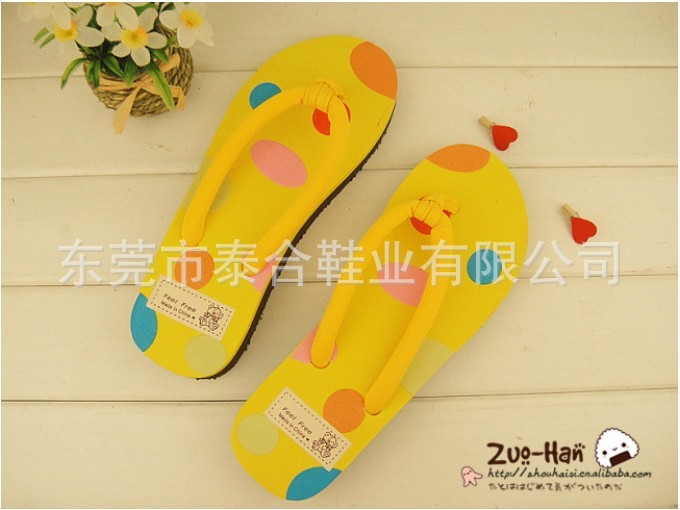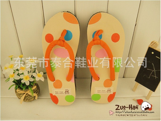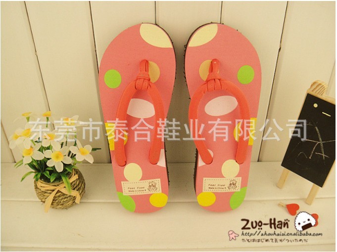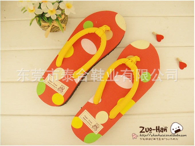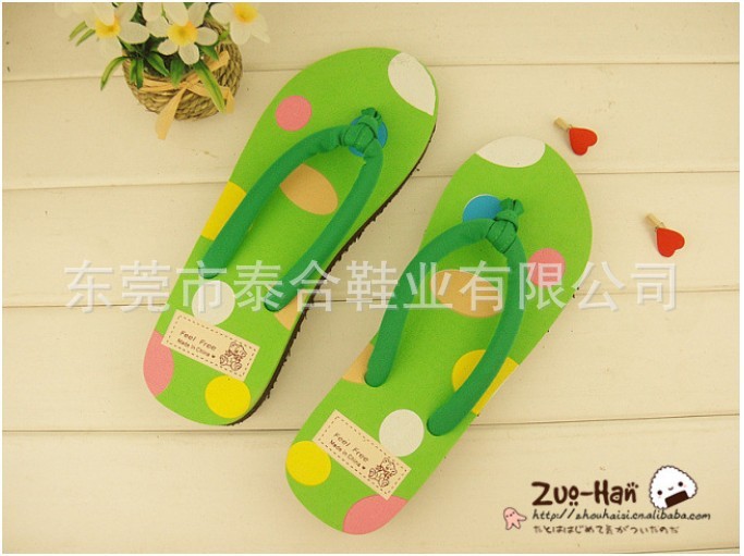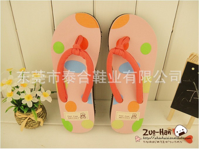 供应新款苹果可爱圆点人字拖鞋 坡跟女士凉拖鞋 坡跟/沙滩拖鞋