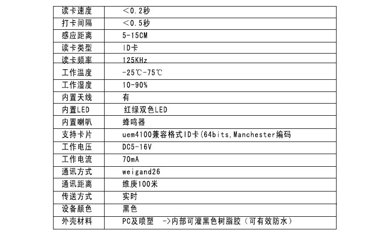 125K读卡器/读卡器/读头/门禁读卡器/门禁系统
