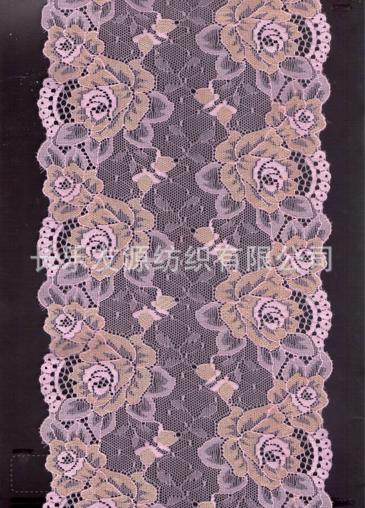 我公司专业生产中高档弹力蕾丝面料、蕾丝花边、网布。蕾丝系列产品多样化,有:弹力蕾丝面料、无弹蕾丝面料、有弹花边、无弹花边、电脑贾卡压纱版、提花花边、金银线花边、双色压纱花边、眼睫毛花边、棉纱蕾丝面料等。产品的风格潮流独特,花型高贵典雅,质量优良稳定,赢得了广大客户的一致好评。其中,压纱、骨线、剪线、金线、银线、双色、睫毛、棉绒产品,花型别致,立体感强,成为女性服装面料辅料的绝佳搭配,也是服装设计的精华所在。欢迎您来函来电订购,真诚与您合作!