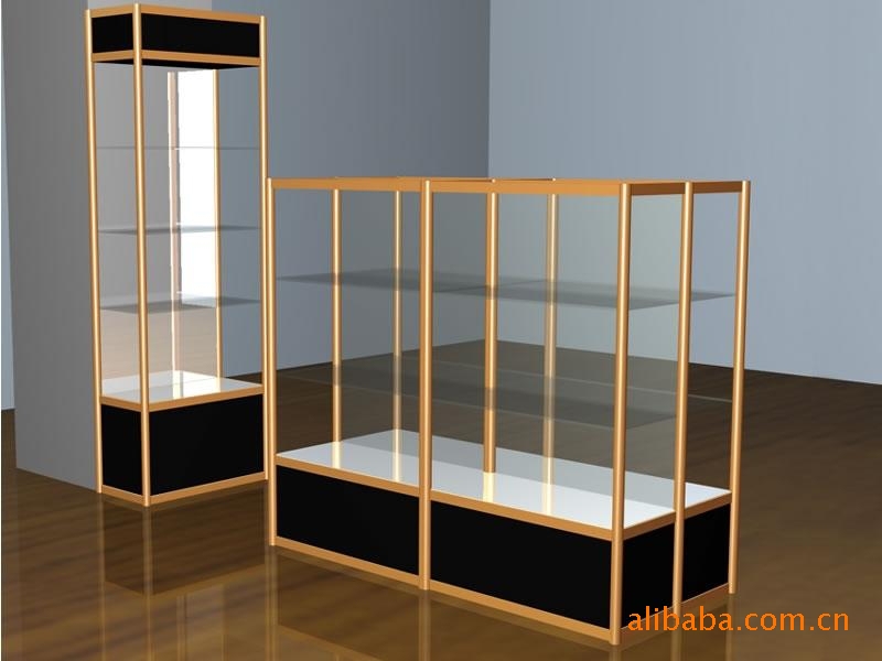 本展柜材质为铝钛合金。易于拆装、运输,店主可以根据自己的店面装修风格选择型材颜色和搭配板材颜色,配以透明玻璃、镜子,和明亮的灯光效果,可以使销售的产品得以完美的展示。
