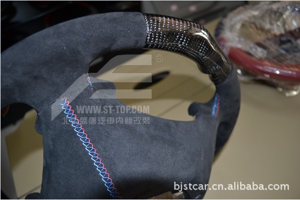 保时捷方向盘半黑色翻毛皮半黑色碳纤维制作